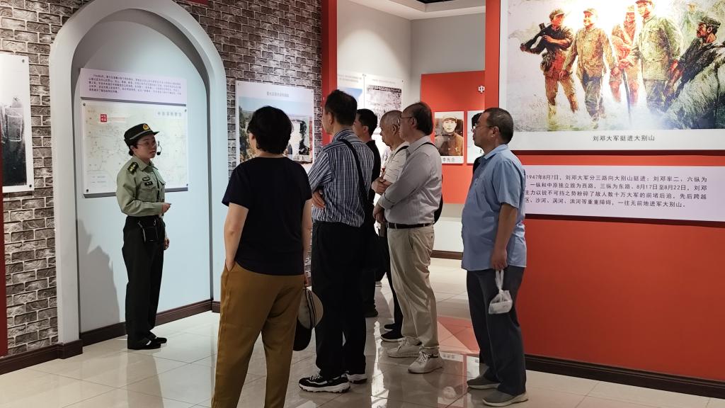 在大别山革命历史文化陈列馆广场,面对鲜红党旗,党支部书记徐颖带领全体党员重温入党誓词。铿锵誓言响彻云霄,彰显了新时代共产党员的坚定信念和责任担当。