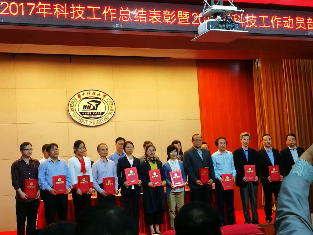 学院有五位专家在会上获得表彰。李红斌教授完成的“强电磁环境下复杂电信号的光电式测量装备及产业化”项目(获国家科技进步二等奖)获得学校科技奖奖励,于克训教授完成的“内部公告”项目(入选教育部高等学校科学研究成果奖)获得学校科技奖奖励,朱增伟发布在NATURE NANOTECHNOLOGY的论文获学校高水平科技论文奖奖励,李化副教授和黄江副教授完成的专利分别获得学校知识产权奖奖励。