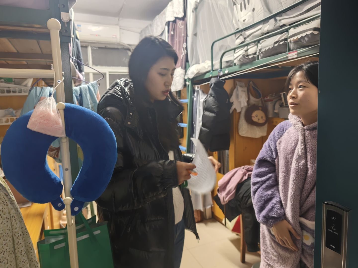 开学以来,各年级辅导员持续服务“一站式”学生社区,开展全覆盖宿舍走访和安全教育。辅导员们逐间排查用电安全、消防隐患,提醒同学们注意防范电信诈骗。“插排绝不能‘叠罗汉’,人走一定要断电!”走访过程中,辅导员晋凡舒针对部分宿舍存在的物品堆放杂乱、插座过载等问题现场督促整改,并反复叮嘱同学们增强安全意识。“早八能适应吗?选课有没有困惑?”辅导员雷浩楠为转专业班级的新同学解答适应性难题,缓解“开学焦虑”。住楼辅导员张孟、董毓格常态化开展“敲门行动”,深入掌握学生思想动态和实际需求,及时回应学生关切。
