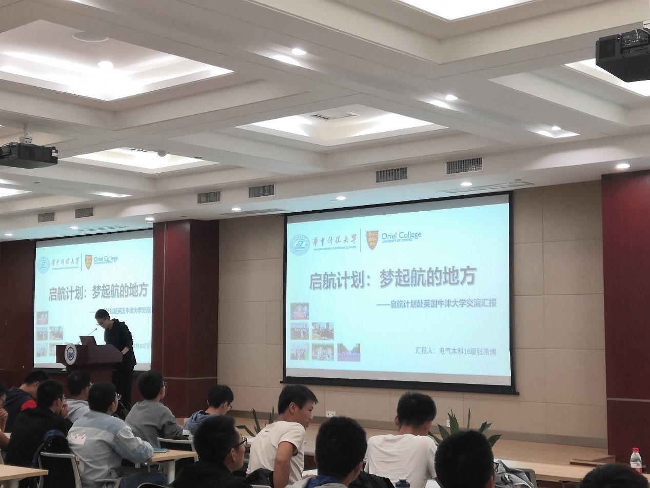2019年10月18日晚,华中科技大学伟德(bevictor)官方网站“启航计划”优秀学子分享会在电气大楼B203多功能厅举行。“启航计划”为华中科技大学学生工作处资助中心主办,教务处与各院系协办的资助项目,旨在帮助经济困难的优秀本科生完成境外公派交流项目,拓展国际视野、丰富学习阅历、提升综合素质。