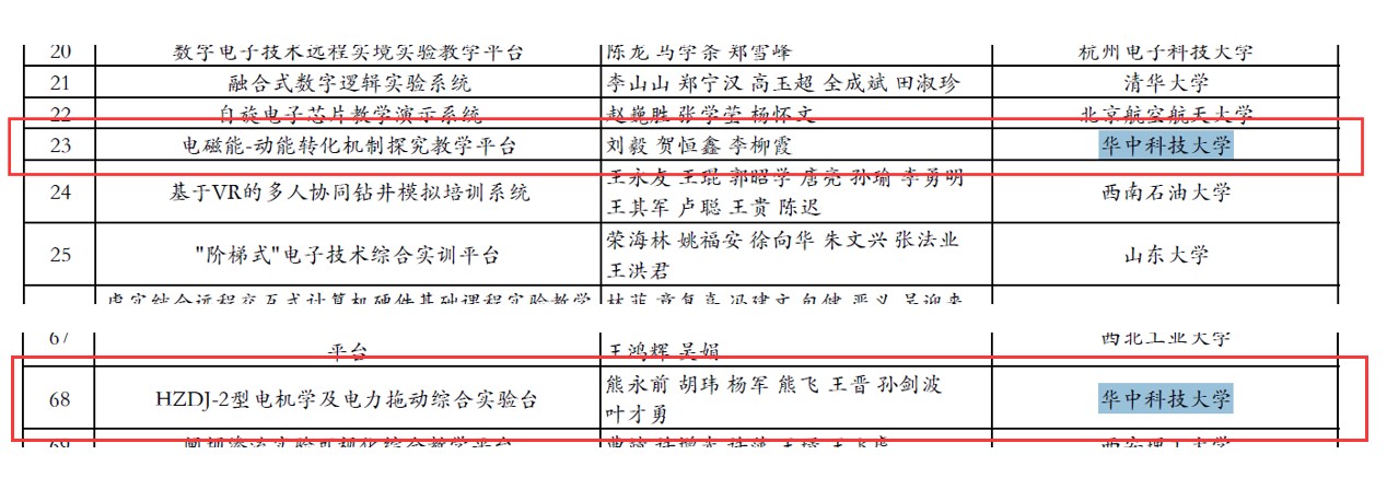 3月10日,中国高等教育学会公布了入选第六届全国高等学校教师自制实验教学仪器设备创新大赛决赛的名单,最终共有351件作品获得决赛入围资格,我校共有八个作品入选,我院教师刘毅、贺恒鑫、李柳霞的作品“电磁能-动能转化机制探究教学平台”和熊永前、胡玮、杨军、熊飞的作品HZDJ-2型电机学及电力拖动综合实验台成功入围。