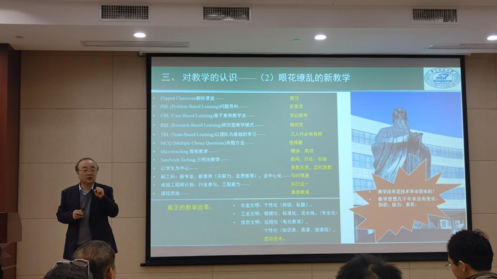 图二 杨勇教授介绍教学国内外形势及相关教学政策
