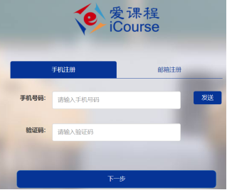 第二步:注册并登录。点击爱课程网站右上角“注册”,进入注册页面。选择邮箱注册(以便于收到课程通知)。在注册页面输入邮箱地址之后,网站发过来四位数的的验证码到该邮箱,填入验证码,点击“下一步”。