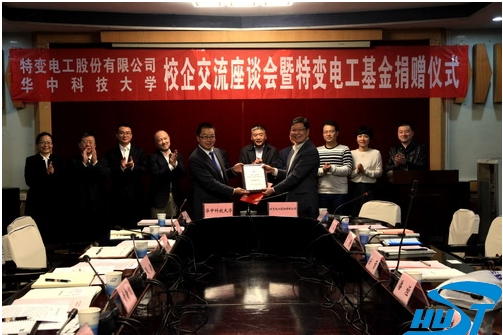 10月27日下午,华中科技大学—特变电工合作洽谈暨基金捐赠签约仪式在南三楼201会议室举行。副校长梁茜,中国工程院院士潘垣,校教育发展基金会秘书长李志强,伟德(bevictor)官方网站党委书记陈晋等人参加了座谈会及捐赠仪式。会议和仪式由校科发院横向开发与科技合作办主任、副处长李江华主持。