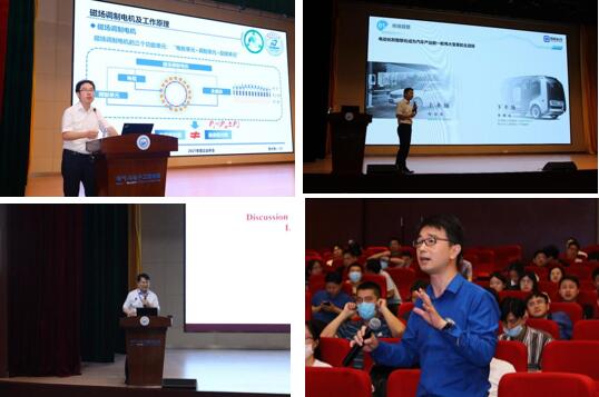 会议专题报告由特邀嘉宾和中心教师围绕电力电子系统电磁兼容、电动汽车电机系统、电机驱动控制系统和直线电机技术六大专题展开。会议特邀嘉宾东南大学花为教授、中国航发控制系统研究所高级工程师郝圣桥、贵州航天林泉电机有限公司电机事业部主任赵飞、西安交通大学陈文洁教授、华中科技大学裴雪军教授、智新科技股份有限公司电机开发部总经理马霁旻博士、弗迪动力有限公司厂长助理张斌博士、清华大学郑泽东教授、清泰科新能源技术有限公司总经理张磊、合肥工业大学赵吉文教授、哈尔滨工业大学寇宝泉教授、深圳市汇川技术股份有限公司总工程师张文农作精彩学术报告,他们从高校和企业的角度就相关研究领域的问题及应用进行了生动形象的阐释和详细的介绍。创新电机团队曲荣海教授、蒋栋教授、李大伟副教授、方海洋副研究员、任翔博士、范兴纲博士、石昊晨博士和倪锴博士也分享了他们的研究成果与心得。每场学术报告后,主讲人都与参会嘉宾就报告内容做互动交流和现场讨论,参会嘉宾纷纷表示,本次大会是一次十分难得宝贵的学术交流机会,近距离聆听高水平的学术报告,与同行业专家深入探讨学科前沿,收获颇丰。