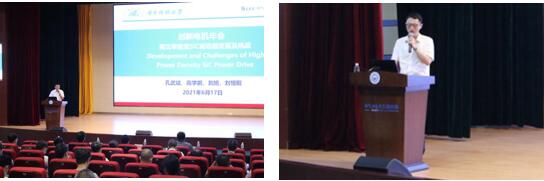 会议专题讲座首先由创新电机技术研究中心教师孔武斌博士就“高功率密度SiC驱动器发展与挑战”专题作报告。孔老师从国内外研究现状、当前的研究难点与关键技术、航空领域的SiC应用情况以及创新电机目前的研究成果四个方面作了详细介绍和讲解。接着,中心教师甘醇、孙剑波和王亚玮博士联袂带来“磁阻类电机研究及发展综述”专题讲座,分别从电机驱动控制、电机本体设计和同步磁阻电机的优化设计三个方面对开关磁阻电机进行综述和特性分析,并向参会嘉宾介绍了他们在开关磁阻电机方面取得的进展。