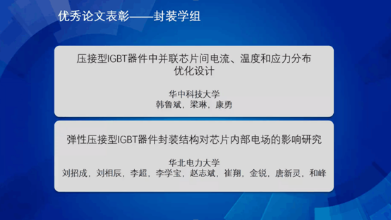 经过专家推荐和评选,我院应用电子工程系博士生韩鲁斌获“中国电机工程学会电力电子器件专业委员会2021年会优秀论文”,论文合作者是梁琳和康勇老师。获奖论文题为“Optimized design of current, temperature and stress distributions among paralleled chips in Press-Pack IGBT module”。主要从电磁分析角度出发,通过压接IGBT模块内部寄生电感的解析模型得到保证电流均衡的封装优化方案;提出一种同时考虑暂态电磁仿真和稳态热力耦合仿真的联合仿真模型,通过提出的模型得到优化布局的电流分布、热分布和应力分布特点;通过搭建脉冲测试和热阻测试平台,基于PCB罗氏线圈、直接热电偶法和压敏特性拟合方法分别得到压接IGBT内部并联芯片间电流分布、温度分布和应力分布。研究成果对未来大功率压接IGBT器件在柔性直流输电中的应用具有参考价值。