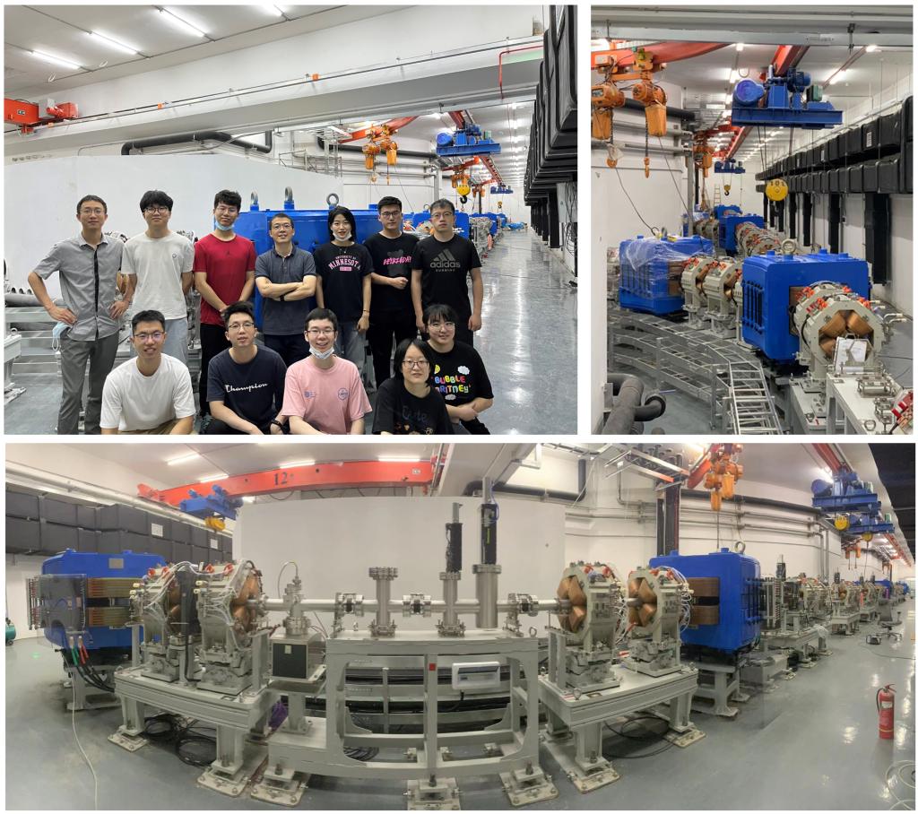 束流输运与能量选择系统。束流输运系统负责质子束从加速器引出后到各个治疗室终端的传递,需要解决束流稳定传输、能量精确调制等关键问题,是实现精准质子治疗的核心系统之一。2022年,课题组完成固定束线及首套旋转机架束线在我校质子中心的吊装入场与安装调试,实现8类共92台套磁铁、束测探针、真空室的集成装配与准直,达到全束线±0.2mm准直精度要求;完成磁铁高精度电流源的现场安装与测试工作,全部电源均获得医疗设备电气安全及电磁兼容认证;自主研发了面向束流输运系统快速响应的分布式控制系统BCS及安全联锁系统,经测试具有良好的可靠性及设备安全性。这些工作为后续的回旋加速器入场及带束调试奠定良好基础。课题组针对质子治疗小型化趋势,开展了大动量接受度超导机架设计研究,在今年的“首届中国-日本粒子治疗技术创新与合作论坛”、“第二届中国肿瘤粒子治疗工程技术大会”、“International Workshop on Fixed Field alternating gradient Accelerators (FFA’22)”等国际及国内会议做受邀或口头报告,获得持续关注。