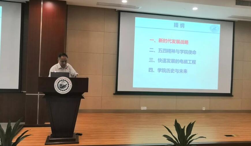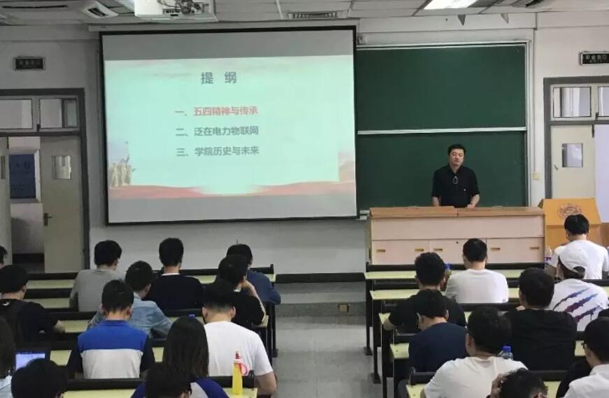 樊宽军以“传承五四精神,建功立业新时代”为主题回顾了学院近70年的发展历史,结合近期的中美贸易摩擦,他指出,中国特色社会主义进入新时代,对科技工作者提出了更高战略要求。“沧海横流,方显英雄本色,”他告诫同学们在日常生活中践行“爱国、进步、民主、科学”的五四精神,敢于竞争,善于转化,早日成长为国家电力与能源事业的优秀人才。