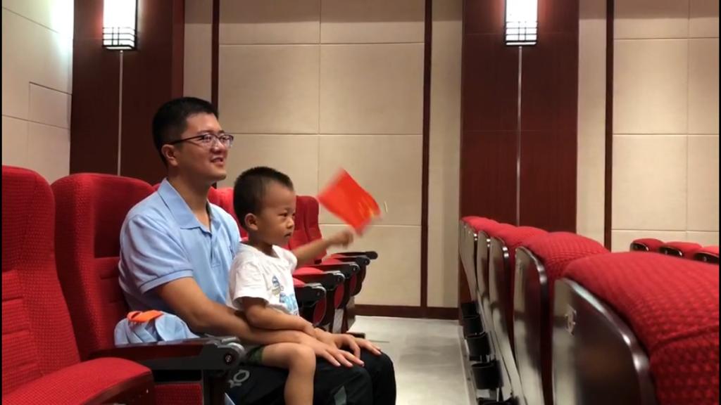 聚变所郑玮老师在家与家人一同观看阅兵仪式