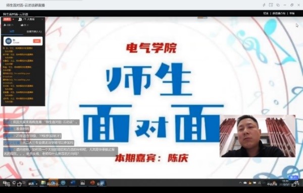 与老师的空中约会,便是广受好评的“师生面对面云访谈”。目前已经开展三期,超过600名学生参与其中。首期由电工电磁系陈庆老师作为访谈嘉宾,分享了他带队斩获“挑战杯”全国一等奖的经历,为同学们播下创新创业的种子。第二期李冬老师介绍了应用电磁所的前沿研究方向,为同学们拓展了专业认知视野;第三期方家琨老师围绕如何做好科学研究,结合自身的学习成长经历进行分享,干货满满。学院将继续保持每周两次师生面对面活动,让更多学生与老师互动交流。