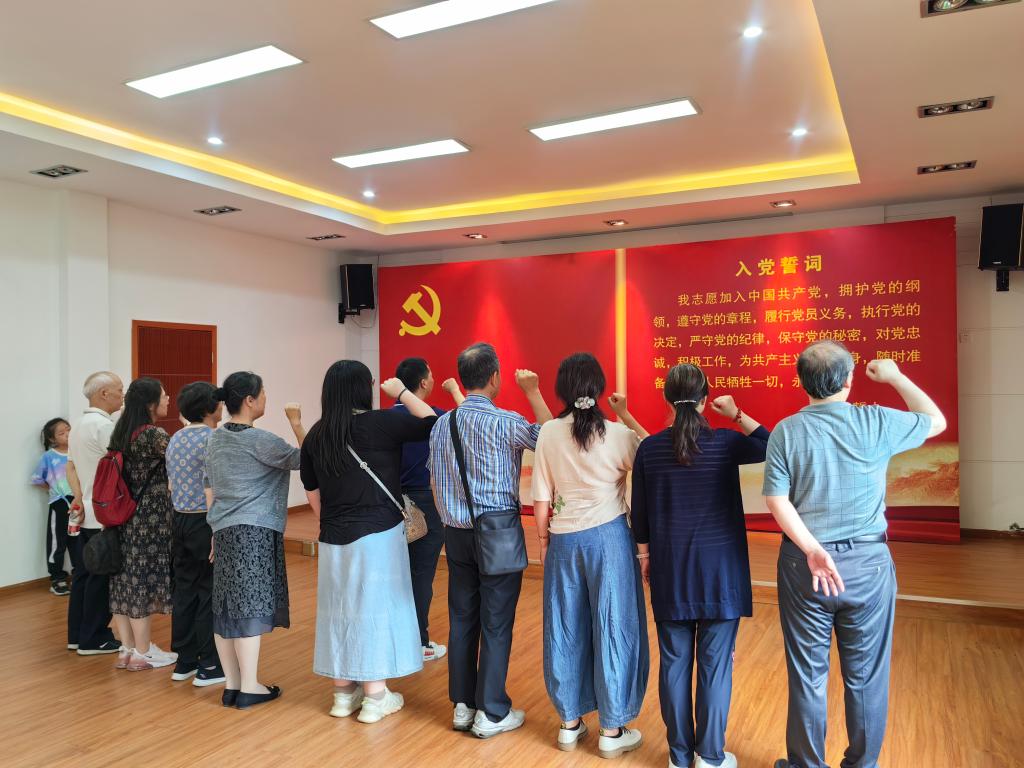 在会议室,全体党员面向党旗,高举右手,重温入党誓词,字字铿锵,句句千钧,再次感悟初心使命,接受政治洗礼。