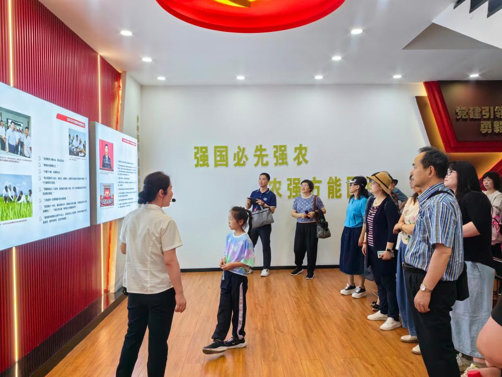 结束峒山社区的参观学习,全体党员又来到东港良种基地,工作人员向大家介绍高产示范红莲型和两系杂交稻的新品种及优势,大家置身其中,切身感受“粮食安全要靠自己”的实力。
