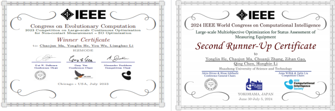 科研创新,勇攀学术高峰。近五年来,何成博士发表高水平SCI期刊论文40余篇,其中中科院一区论文22篇,授权发明专利15项(牵头成果转化3项),也获得了多项学术荣誉,如2021年ACM China Council SIOGBIO Chapter(ACM中国理事会专业分会中国计算机生物医学专业分会)新星奖,2023-2024年连续入选斯坦福/爱思唯尔全球前2%顶尖科学家榜单。他积极开展学术服务工作,担任3本SCI期刊编委,组织国际会议分会场15场,牵头组织SCI专刊4期,推动了演化计算领域国际合作。何成博士积极搭建国际学术桥梁,努力拓展学术服务新格局,助力提升学科国际影响力,在IEEE计算智能协会国际大会上,他牵头组织分会与竞赛15场次。他在安徽大学、西湖大学等高校分享前沿成果,展现了华中卓越学者青年岗的风采。何成博士受邀在DOCS 2024(第6届数据驱动的复杂系统优化国际会议)、AJCAI 2024(第36届澳大利亚人工智能联合会议)等多个国际会议作大会报告,提升了学校的影响力,为全球相关领域的发展贡献了中国智慧。