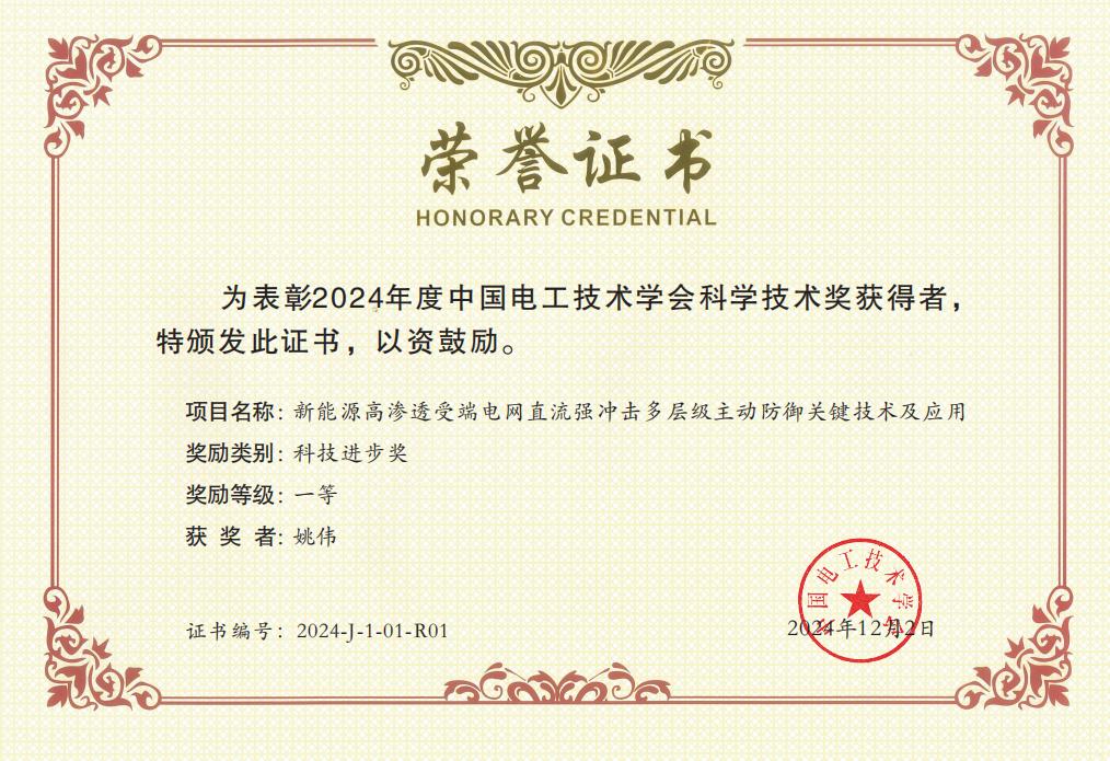 积极推动成果转化:随着直流和新能源渗透率不断提升,受端电网中交流-直流-新能源(交-直-新)耦合程度加剧,电网不确定性显著增强,动态电压支撑能力急剧减弱。单一交流故障易形成直流强冲击,严重威胁受端电网安全。姚伟带领的团队历时十年技术攻关,在多项国家级项目支持下,从交-直-新三个维度构建了事前高效预防-事中紧急遏制-事后协同抵御的直流强冲击多层级主动防御体系。成果整体应用于河南、江西、湖北等多个省级电网,近三年协助提升天中、雅湖、陕武、青豫直流输送能力共600万千瓦。主动防御系列技术在南瑞继保、许继电气、国电南自等产品中得到转化,应用于国内外12项直流工程,368家新能源场站(含东盟单体最大风电场),服务国家“双碳”与“一带一路”倡议,提升中国制造国际影响力,取得了显著的经济社会效益。