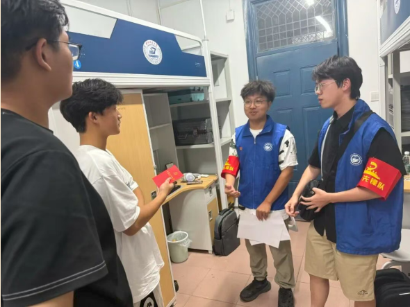 展现先锋形象。在迎新一线,党员先锋队成为新生进入大学后最先接触的朋辈群体。他们佩戴党员徽章,以热情的笑容、耐心的解答、周到的服务,成为校园里一道亮丽的红色风景线。在紫菘学生公寓,队员们清晨便已就位,主动帮助新生搬运大件行李,用手推车往返于宿舍楼之间。紫菘三栋“有困难找党员”服务岗持续开展,党员同志轮流值班,随时为新生提供帮助。“我来帮你”不仅是简单的问候,更是实实在在的行动,让新生初入校园便感受到来自党组织的温暖。