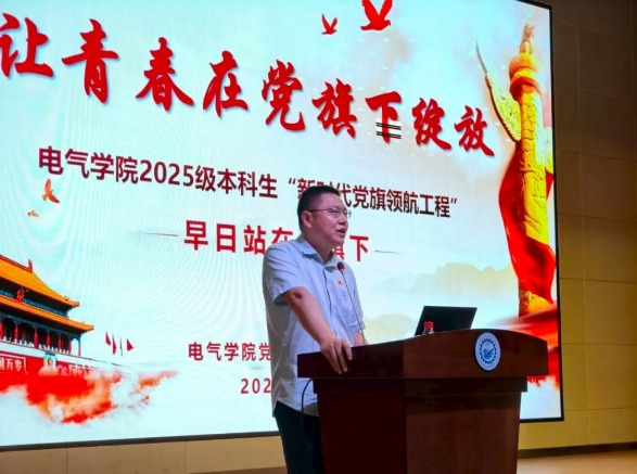 筑牢信仰之基。8月31日,学院党委书记张明为全体2025级本科新生带来了一场别开生面的“大学第一课”——“早日站在党旗下”专题讲座。张明从中国共产党的发展历程、光荣传统和伟大成就引入,结合国家战略需求与电气学科发展方向,深刻阐述了新时代电气学子的责任与使命。他鼓励同学们坚定理想信念,树立远大志向,把个人成长融入党和国家事业发展之中。这堂“第一课”不仅是思想上的启蒙,更是精神上的洗礼,让新生们对“为何入党”“如何入党”有了更加清晰的认识。