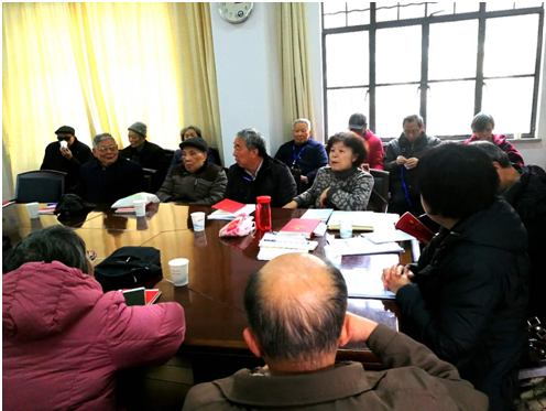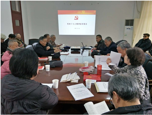 学院老协分会主席孙亲锡向党员汇报了11月下旬参加湖北省老干部局组织的党支部书记培训情况。培训的主要内容是学习贯彻党的十九大精神,坚定“四个自信”,强化四个意识;来自全省各地区、各行业的100名党支部书记参加了培训,来自武汉地区高校的有6位同志;有5位同志在会议介绍了开展基层党组织工作的经验和心得体会,与会人员研讨交流了开展工作的方法;会议组织参观了老年大学、医院等老同志活动场所。孙亲锡向全体党员转达了省老干部局领导对老同志的关心慰问之情,希望全体老同志不辜负上级期望,老有所为、老有所乐,积极参加丰富多彩的文化体育集体活动,学习养生知识,保证自己的心理健康、身体健康。孙亲锡告诉老同志并希望他们转告全体老同志,12月7日学校老干处将邀请人事处介绍社保政策的重要内容,请大家前往听课。