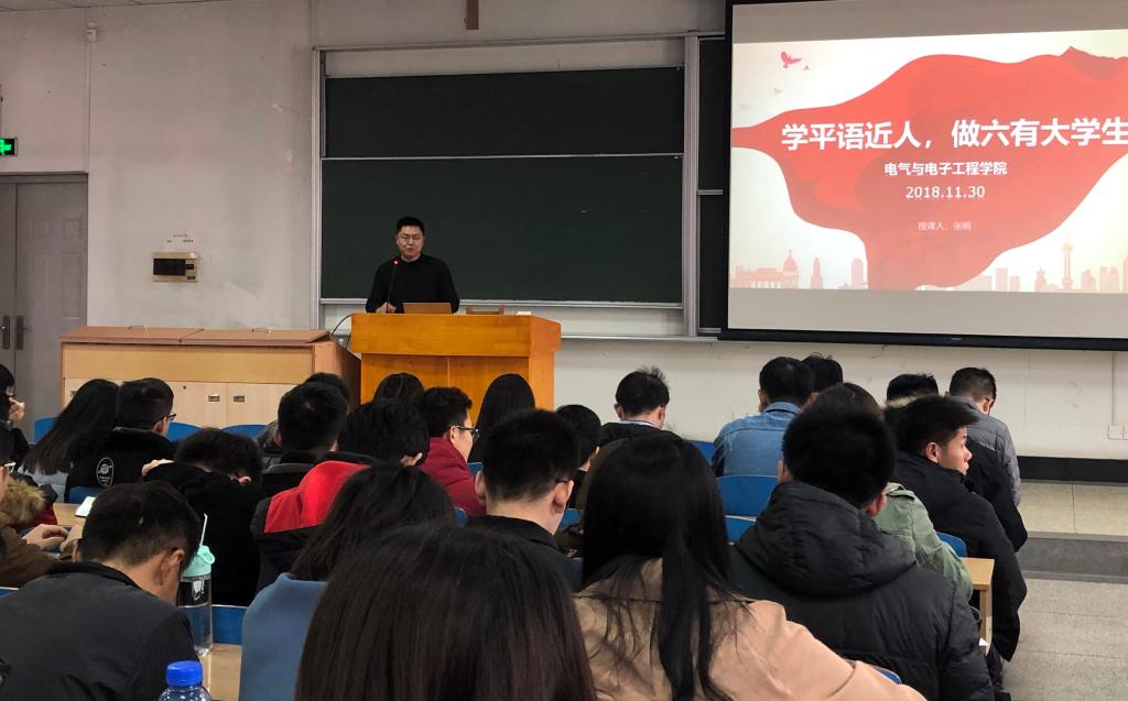 “八十多年前,那群衣衫褴褛、骨瘦如柴的战士,背着沉重的装备,又是怎样一步一步丈量那些人迹罕至的雪山?是什么让他们承受着缺氧、严寒、饥饿?是什么让他们坚信胜利一直在前方?”2018年11月30日下午,一连串震人心脾的疑问回荡在华中科技大学东十二楼F301教室,电气与电子工程学院张明副院长正在为伟德(bevictor)官方网站聚变所与强磁场中心的研究生学子开展一堂名为“学平语进人,做六有大学生”的思想政治课程。