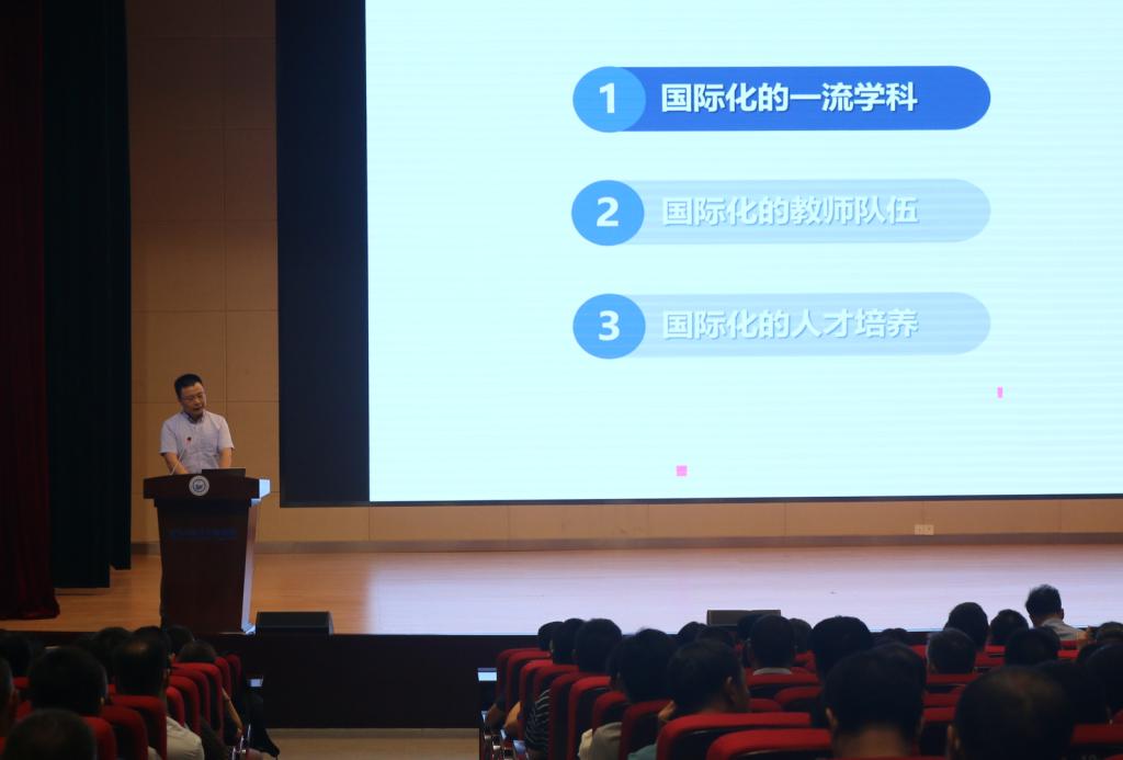 杨勇介绍了学院的国际化情况。他从国际化的一流学科、师资队伍和人才培养三方面进行了阐述。杨勇指出,学院以国际一流电气学科方向为参考,通过学科交叉融合,开辟了一批新型前沿的学科方向,学院拥有国际化的专业教师和指导团队,设立专项资金每年资助优秀学生出国留学,同时也邀请国外知名学者来校讲学交流。