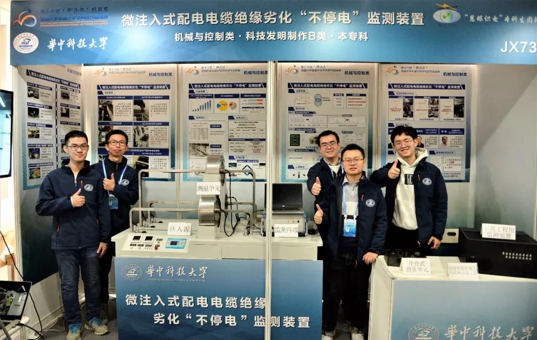 “慧眼识电”团队提出了调制型超低频微注入方法,研制了非接触式微安级电流传感器,设计了绝缘状态分析评估算法,能够准确、实时地监测配电电缆绝缘劣化状况。作品能在不停电的情况下及时发现电缆故障隐患,变电缆运维从“按时检修”为“按需检修”,从而减少因绝缘劣化导致的停电和电气火灾事故,在电力、钢铁、石化等领域有着广泛的应用前景。团队负责人周磊回忆起作品的研制过程,分享了他的经验:经历35天,阅读了218篇文献,进行了17次讨论,制定了第一套方案;通过自主设计传感器结构、绕制测试传感器性能、尝试全新的注入信号、设计基于大数据的判断算法,终于设计出了第一台样机;从实验室走向工程实际并不容易,整体结构、电磁屏蔽、机箱散热、甚至每根导线的走向都要推倒重来,经历了一轮又一轮的整改,终于通过了中国电科院等权威机构的检测;作品申报书的撰写以及现场答辩的挑战非常大,通过强化训练,腼腆的“工科男”终于变成了大家眼中的“演说家”,历时381天,一路走来收获满满, 先后获得华中科技大学“求是杯”特等奖和湖北省“挑战杯”特等奖,并进入全国决赛的终审环节,最终斩获一等奖。