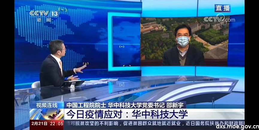 (中央电视台《新闻1+1》栏目视频连线中国工程院院士、华中科技大学党委书记邵新宇)