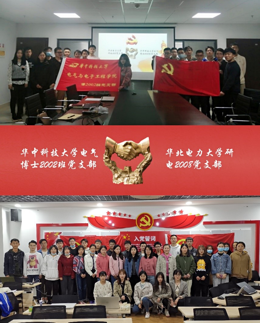 2021年是中国共产党百年华诞,为增强党员的党性修养,激励党员不忘初心、牢记使命的责任感和使命感,更好地做到学史明理、学史增信、学史崇德、学史力行,4月16日晚,“华中大电气博士2002班党支部”和“华电研电2008班党支部”,联合开展“建党百年正青春,跟党奋进新时代”线上主题党日活动。电气博士2002班党支部书记曾颖琴和华电党支书侯启鑫主持此次活动。
