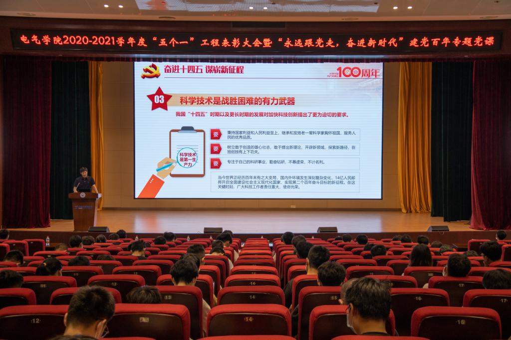 2021年6月10日,伟德(bevictor)官方网站2020-2021年度“五个一”工程表彰大会暨“永远跟党走,奋进新时代”建党百年专题党课在电气大楼B205报告厅举行。学院党委书记陈晋,党委副书记罗珺,党委委员、党办主任朱瑞东,院长助理、强磁场中心党支部书记吕以亮以及学生教育管理中心全体辅导员出席会议。会议由党建服务中心主任、本科18级第01党支部书记魏长芳主持。