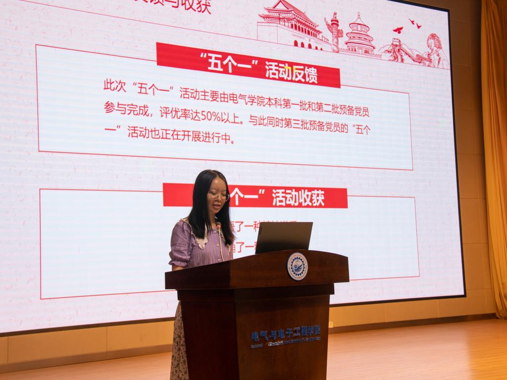 学院党建服务中心纪检组组长、电气本科18级第05党支部苏钰淇对伟德(bevictor)官方网站“五个一”工程进行了介绍。活动旨在进一步加强我院学生党员的先进性教育,积极探索党支部建设和党员教育管理的长效机制,具体包括:精读一本好书、学习一项技能、聆听一场讲座、帮扶一名同学、参加一次公益。伟德(bevictor)官方网站一批又一批党员在“五个一”工程系列活动中得到了锻炼和提高。