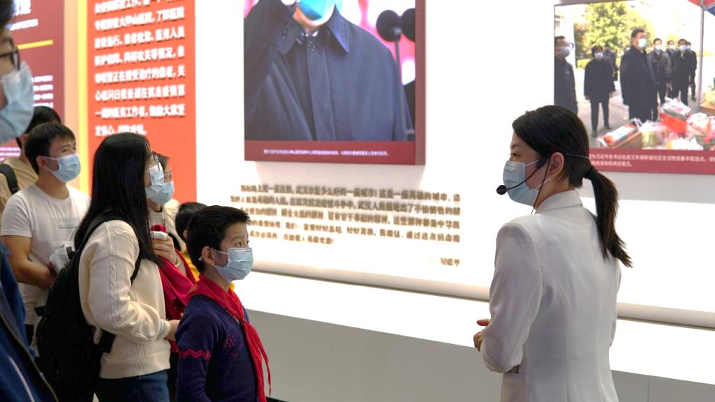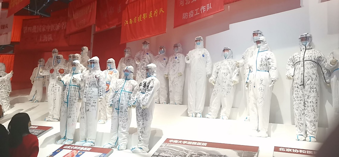 在展厅的“冲锋在前,党旗飘扬”的部分,同学们从一面面飘扬的党旗中感受到了在抗疫防控战场上,湖北省387万名党员冲锋在前,58万名党员干部深入社区的奉献精神,他们充分发挥了先锋模范带头作用,不忘初心、牢记使命,冲到一线,守土有责、守土担责、守土尽责。