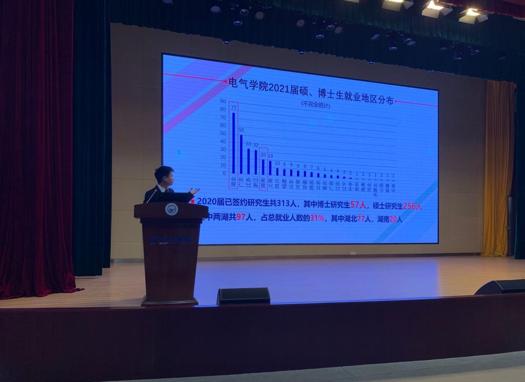 首先,主持人蔡翔向大家介绍伟德(bevictor)官方网站2021届毕业生在中部地区的就业概况,对去年的就业数据进行了客观分析。数据表明,2021届毕业生就业的去向以湖北省、广东省、江浙地区、湖南省为主。毕业生的就业单位主要是国有企业,以各个地区的电网及其附属单位为主,其中博士生比硕士生更愿意去科研设计单位。以湖南省为例,约有64%的毕业生选择就职于电网公司,只有29%的毕业生选择了相关企业单位。值得注意的是,2021届留鄂硕士毕业生共61人,去各类企业的人数高达23人,占比约为38%,而就职电网公司的人数为22人,占比36%。可以看出,越来越多的留鄂毕业生选择了企业就职。