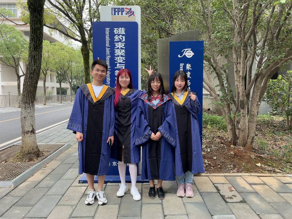 当春风吹走馥郁的花香,当夏花着上斑斓的盛装,在这栀子花、向日葵花开的离别季节,聚变所2021届毕业学子的青春往事被再次提起。6月21日,聚变所2021届毕业生穿上了学位服,在聚变所门口与老师们欢快地合影。2021届研究生马上就要离开聚变所走上社会,聚变所的老师和同学们纷纷为他们送上祝福,毕业生们也依依不舍。即使岁月流逝,时光也带不走执着的梦;即使天各一方,距离也切不断永恒的情。聚变所旁,桂花飘香,喻家山下,梧桐有意,年年盛开,迎候毕业生载誉归来。最后,祝他们在未来的工作中一切顺利!前程似锦!梦想成真!成为国家栋梁之材!