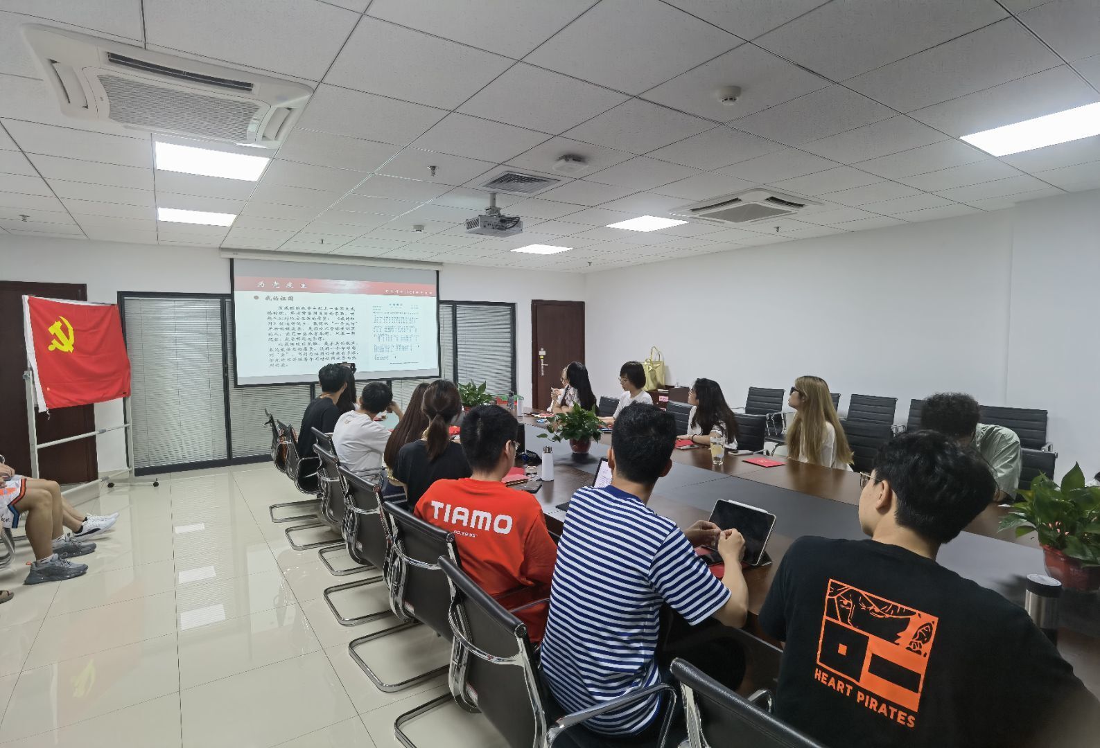 随后,李秋彤同志带领大家学习了党旗领导下华中科技大学强磁场科学中心克难攻坚的事迹。她援引6月27日新华社对国家脉冲强磁场科学中心的报道《华中科技大学:党员是科研攻关“领头雁”》,介绍了强磁场中心初创之际一穷二白、筚路蓝缕的艰辛建设背景,并讲述了团队成员们在中心党支部的坚强领导下克服复杂工作环境、突破国外技术封锁的事迹。经由建设者克难攻坚的故事,同志们深刻认识到短短十年来强磁场中心的建设成就离不开党,党建工作在加强思想引领、推进凝心聚力、强化人才吸引等方面起着不可或缺的重要作用,要让党建与科研同频共振,让创新与传承并驾齐驱,一同建设更美好的华中大。