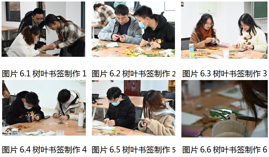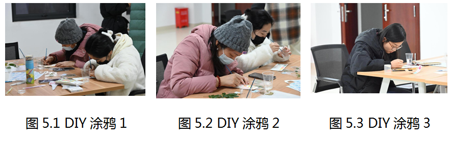 志愿者们围坐在一起,享受着DIY的乐趣,从选择叶子到合理排布,小组成员们交流着自己的灵感和创意。热情创作的氛围隔绝了雨天的湿冷和屋外的寒风,大家沉浸式创作,专注于作品的每一个环节,笑逐颜开。