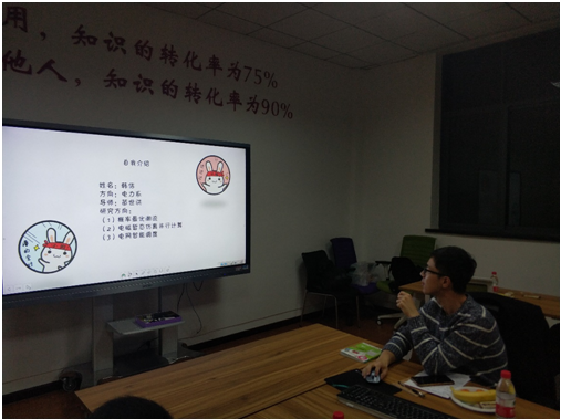 韩佶以“做一个快乐的大学霸”为主题进行了经验分享。他首先为大家讲述了该“怎么读论文”。他指出,在刚拿到自己的课题时,大家应该先看一些综述类的文章;到了研究初期,就去看一些知名度较高的期刊如《中国电机工程学报》、《电力系统自动化》、《PowerSysem》等;在研究进行的过程中,可以多看一些硕博论文;到了即将发表论文时,可以再次重读好的期刊,并从中寻找创新点。另外,韩佶也指出大量阅读文献的重要性。他认为,在读了越来越多的文献之后,就会对之前看的文献有全新的认识,在阅读大量文献的同时,也希望大家能认真做记录并分类整理纸质文献。在科研的过程中,难免会遇到一些困难,而韩佶对此的态度则是“遇到困难只能接着干”。“首先是查文献,大家可以根据关键字检索自己需要的文献。除此之外,我认为更重要的是需要去主动请教学长学姐,他们的一番话往往可以顶你看三、四篇文献。在遇到困难时,自我解压也是必不可少的,大家可以根据自己的喜好进行如唱歌、摄影、健身等活动。”科研之外,韩佶也指出在研究生生活中应该调整好自己的心态,多认识一些朋友,多做自己想做的事情。“要做一个快乐的学霸,珍惜为数不多的学生生活。”他说道。