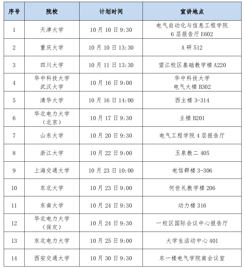 本次校园招聘面向电工类专业、全日制硕士及以上学历层次2020年应届毕业生。行程安排如下: