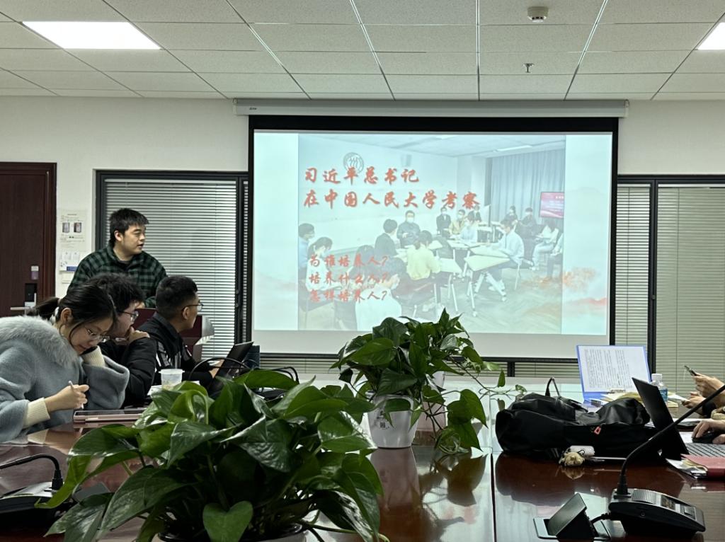 院党务中心主任楼奕轩结合上学期研究生党支部工作情况进行了总结,她对各支部在上学期党建工作中取得的成绩表达了祝贺,并感谢各党支部书记长期坚持用心做好支部建设。