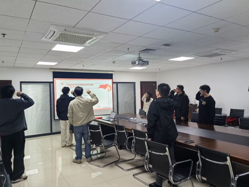 支部书记张立辉主持开展研究生学术道德月之学术诚信讨论会,强调学术诚信是研究生科研生涯的必修素养,并组织支部成员宣读学术诚信誓词,承诺恪守学术底线、尊重知识产权、主动学习规范,以诚信品格守护科研尊严。