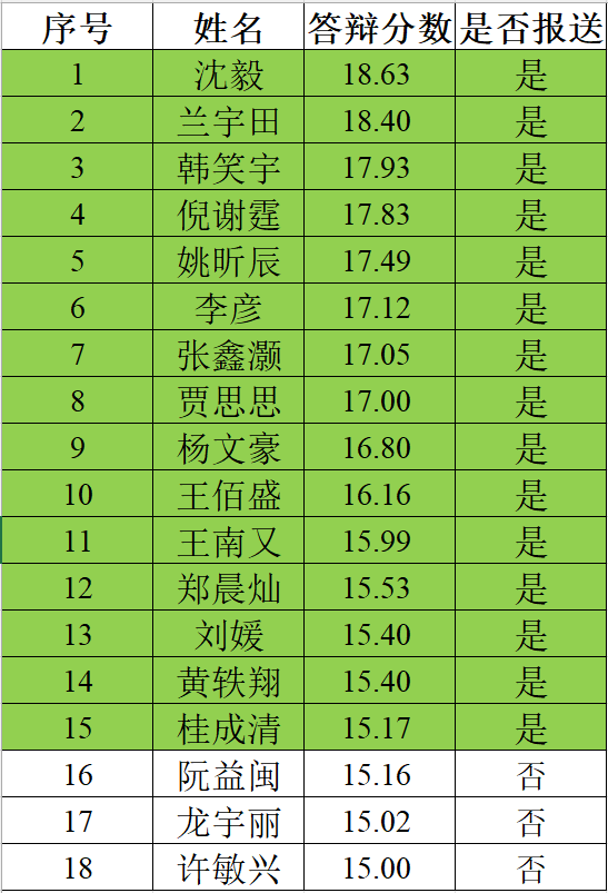 2023年伟德(bevictor)官方网站蒋震奖学金答辩排名公示