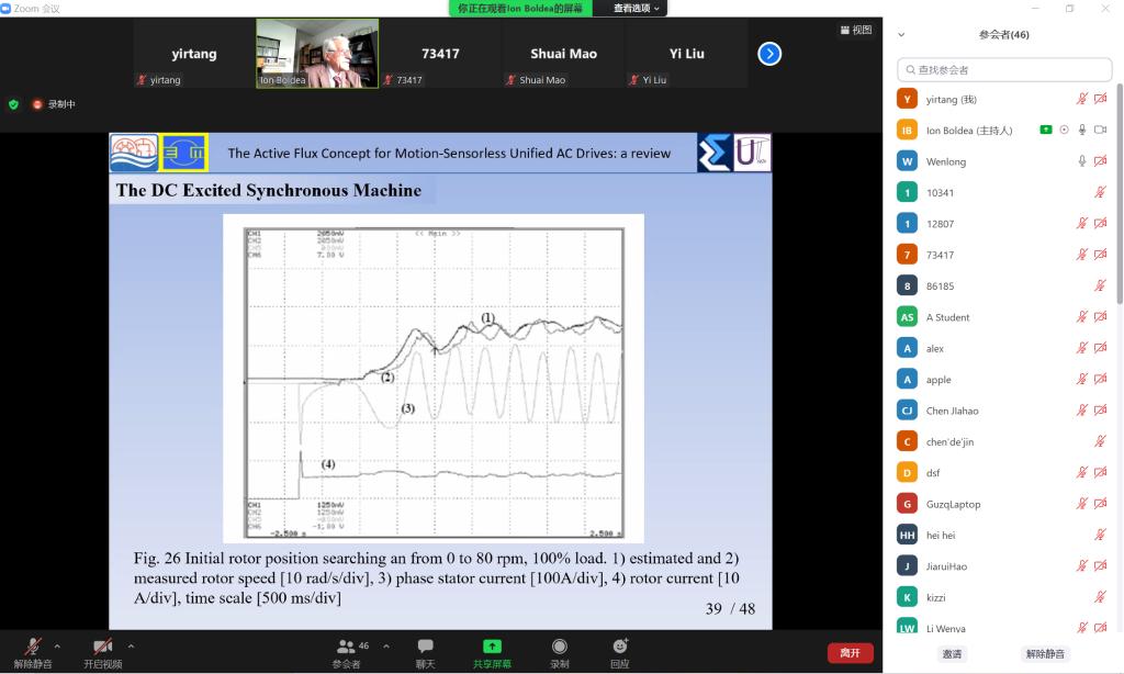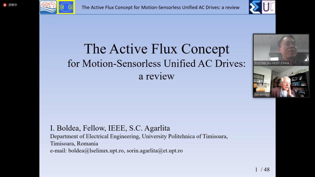 受IEEE工业电子学会(IES)武汉分会和伟德(bevictor)官方网站的邀请,蒂米什瓦拉理工大学Ion Boldea院士于12月21日做客第443期“携手电气精英,与未来同行”系列讲座,在线上作了题为“基于‘有效磁链’模型的无位置传感器交流电动机/发电机驱动:具有代表性案例研究综述”的学术讲座。