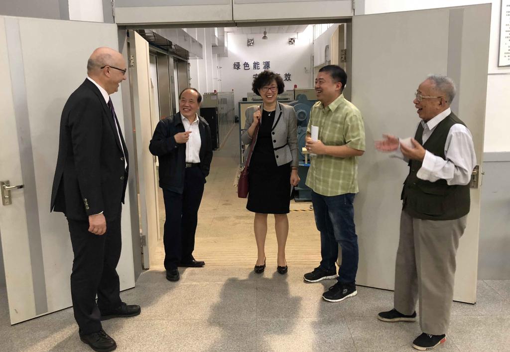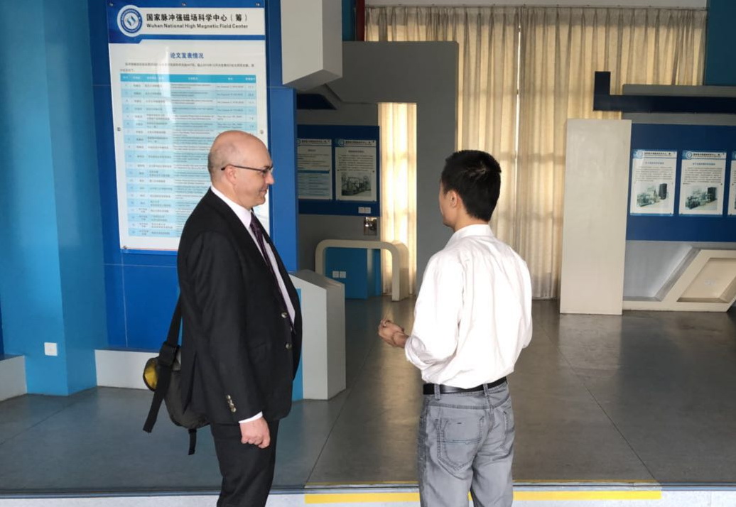 Livens教授和王忠东教授先后参观了强磁场实验中心、J-TEXT聚变装置、电力系统动模实验室和应用电磁工程研究所。在动模实验室,王忠东教授就两校在电力系统领域的合作前景与陈德树教授、程时杰院士进行了深入沟通。在应用电磁工程研究所,Livens教授就曼彻斯特大学的核能相关研究工作向应用电磁所师生做了专题报告。