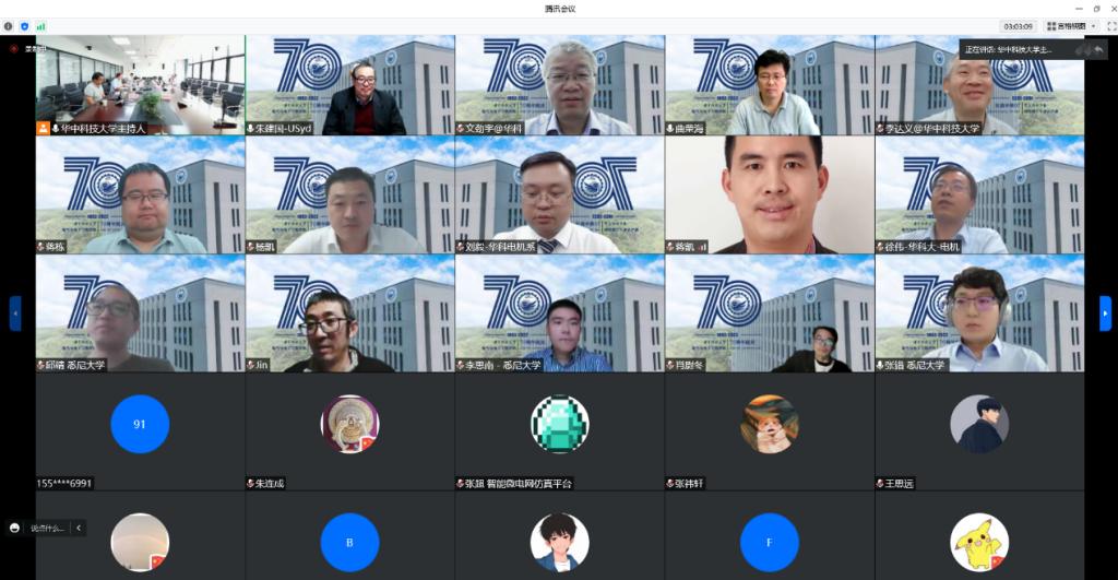 为加强与悉尼大学(USYD)的交流与合作,庆祝华中科技大学(HUST)成立70周年,于2022年6月28日北京时间13:00-16:30(悉尼时间15:00-18:30),在腾讯会议线上举办了题为“可再生能源和智能电网前沿技术”的研讨会。本次的研讨会由华中科技大学徐伟教授组织,华中科技大学文劲宇教授和悉尼大学朱建国教授共同主持。本次论坛共设置了8场精彩报告,内容涵盖储能技术、柔性电力系统、未来净零排放电网、主动磁轴承驱动、双馈直流发电等前沿研究方向。