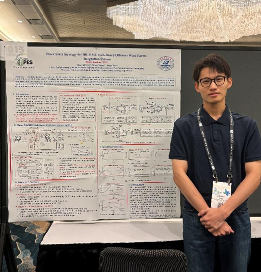 7月28日,电力工程系23级硕士生杨明睿进行了题为“Black Start Strategy for DR-MMC Hub-Based Offshore Wind Farms Integration System”的论文海报展示(指导老师:向往教授),并与来自英国阿伯丁大学、加拿大蒙特利尔理工学院的专家学者进行了交流。该论文针对基于DR-MMC功率枢纽的海上风电并网系统,提出了一种协调利用陆上混合MMC宽电压运行范围和交流风电机组低电压穿越能力的启动策略。与传统的启动方法相比,该方法无需在海上平台处配置额外设备,具备一定的经济性优势。