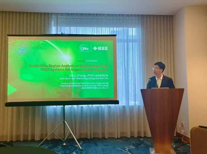 7月29日上午,电气工程系24级博士生郑启瑞在“Analytic Methods for Power Systems”分会场作题为《Loadability Region Analysis of Multi-infeed VSC-HVDC Systems for Urgent Power Dispatch》(多馈入柔性直流系统紧急调度的负载能力域分析)的口头汇报。中国西北部风光资源富集与东南部负荷中心的空间错位,催生了全球规模最大的新能源跨区输送需求。传统高压交流输电(HVAC)在应对波动性新能源远程传输时面临暂态稳定极限低、故障恢复慢等瓶颈。团队聚焦柔性直流输电(VSC-HVDC)这一变革性技术,首次系统性量化其在多馈入复杂电网中承载紧急调度的稳定裕度优势。研究直击电网安全核心诉求——当新能源骤增或主干通道故障时,系统能否通过柔性直流通道快速转移功率而不诱发连锁崩溃。在结束后,我们与来自亚利桑那州立大学的Weng Yang主席就中国电网技术的发展展开讨论,受益匪浅。