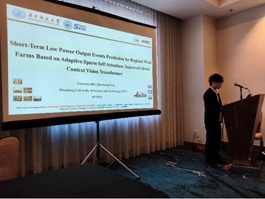 电力工程系23级博士生覃国元同学参加了7月29日的PESGM学生海报竞赛,并于7月30日下午在Grid Transformation论坛介绍了论文“Short-Term Low Power Output Events Prediction for Regional Wind Farms Based on Adaptive Sparse Self Attention-Improved Global Context Vision Transformer”,并就文章中展示的研究工作与参会的专家和学者展开讨论。论文提出了一种区域风电场的低功率输出事件的预测方法,为电力调度部门应对风电供电不足带来的电力系统电力电量不平衡风险提供支撑。