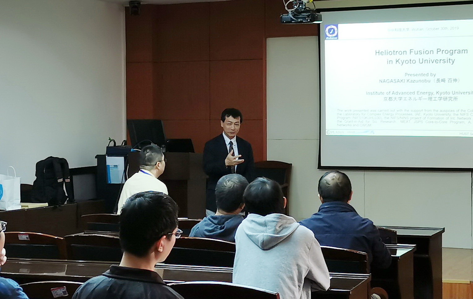 上午9时,合作协议签署仪式开始。陈忠勇教授主持仪式。首先,陈忠勇教授对京都大学Kazunobu Nagasaki教授一行的到来表示热烈欢迎。随后,京都大学的Kazunobu Nagasaki教授带来题为“Heliotron Fusion Program in Kyoto University”(京都大学的Heliotron融合计划)的报告。报告介绍了Heliotron J螺旋器聚变实验装置的发展历史及其最新的实验结果,此外,还简单介绍了京都大学能量理工学研究所的相关情况。最后,丁永华教授就我所与日本京都大学能量理工学研究所合作领域进行了阐述,并表达了对双方合作前景的美好期望。