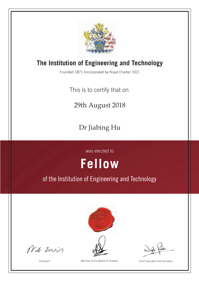 IET Fellow是IET学会的最高学术荣誉,授予在科学与工程技术领域展示出高度责任感并取得重要成就的杰出专业技术人员。IET每年遴选约300名会士(Fellow),其中中国内地入选者20-30名。