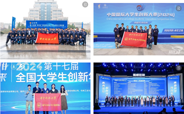 紧密连接高校、政府、产业、社会四方需要,推动技能培养体系的更新迭代,培育适应新质生产力发展的创新型人才,推动高质量发展与中国式现代化。多支学生团队在创新创业赛事中斩获佳绩: 在中国国际大学生创新大赛(2024)国家级竞赛中获金奖2项、银奖3项,湖北省复赛中获金奖3项、银奖3项;在第十七届全国大学生创新年会中荣获“最佳创意项目”奖;在第十四届“挑战杯”国赛中斩获银奖1项,铜奖1项;在挑战杯“揭榜挂帅”专项赛中斩获擂主2项、特等奖3项;在全国大学生电子设计竞赛(湖北赛区TI杯)获得一等奖12项,二等奖25项,三等奖3项,并捧回TI杯。