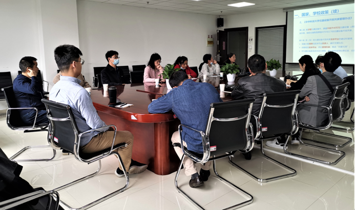会上,学院资产管理员古晓艳老师介绍了国家导向、学校政策,调研我校机械学院、材料学院、国家光电实验室、分析测试中心等开放共享情况,分析了共同点和不同点,介绍了目前学院已经开展的工作和流程,收费标准和收入,以及近几年的获奖情况,最后介绍了下一步工作的初步思路。