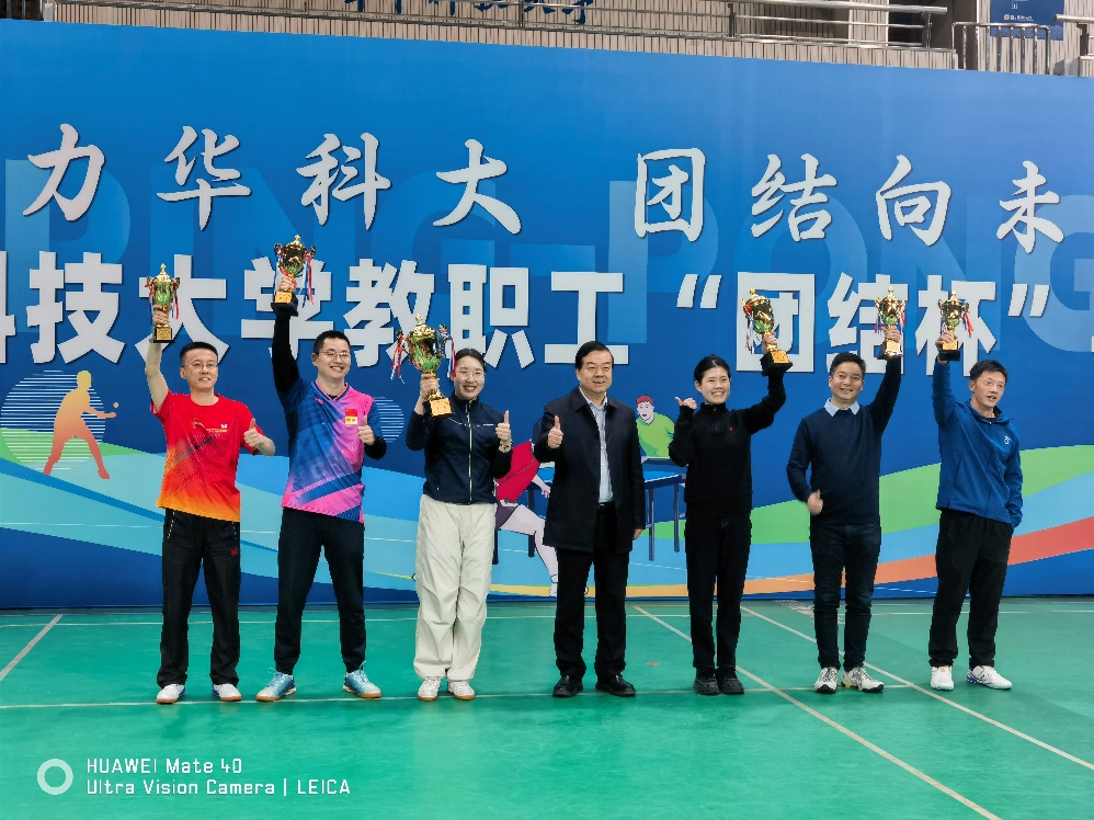 华中科技大学一年一度的教职工团结杯乒乓球团体赛于2024年12月7-8日在光谷体育馆举行。本届比赛高手云集、竞争激烈,汇聚了甲组11个和乙组21个共32个单位,约350名运动员。甲组代表学校乒乓球的较高水平,乙组前两名可升级到甲组,甲组后两名退到乙组,甲组动态调整保持12个单位。经过两天的激烈角逐,伟德(bevictor)官方网站代表队最终喜获甲组第三名,附属协和医院荣获甲组冠军,校机关获得亚军。